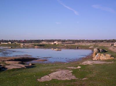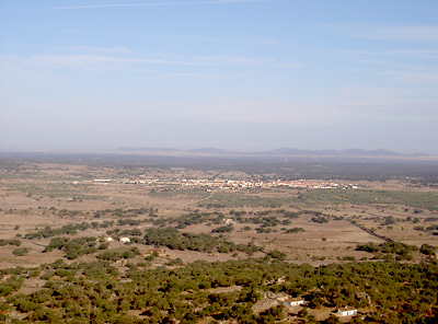 La dehesa se extiende sobre las tierras de Albalá, formando un paisaje rodeado de encinas, alcornoques, jaras y matorrales.